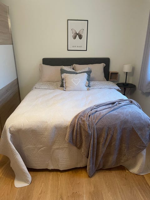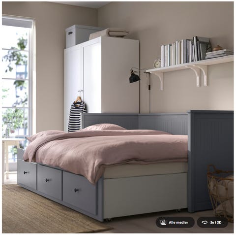 Seng og sengegavl.