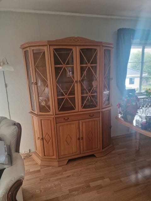 vitrineskap eik med bokhylle