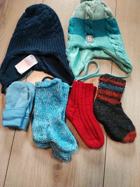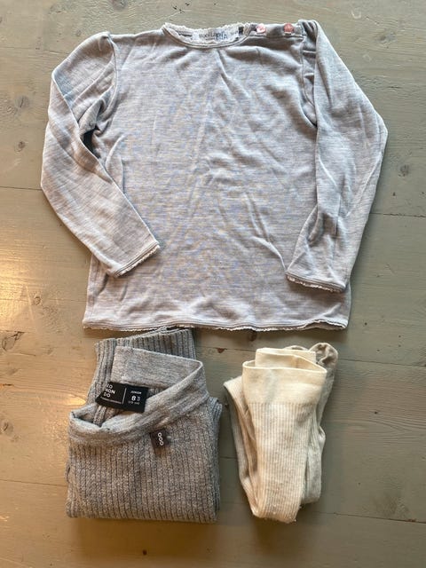 @U5 str 74-80 Ullpakke - God og varm Ull - noe har flekker og små ullhull