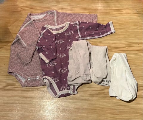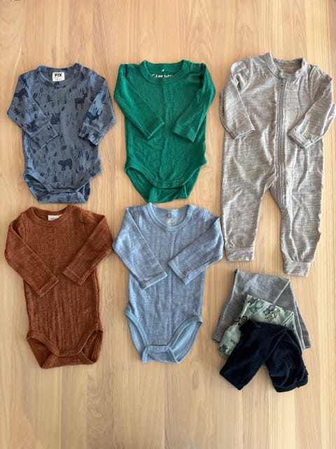 @U1 str 50-56 Ullpakke med body - Varm ull - Noe har noen flekker og små ullhull