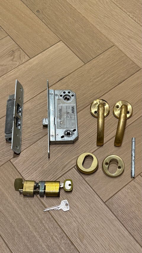 Messing håndtak selges