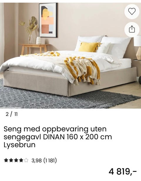 Seng med oppbevaring 160 x 200cm