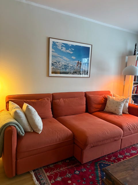 Fin oransje sofa!