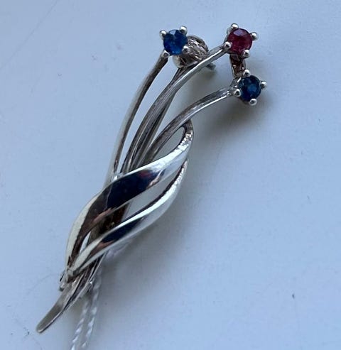 Brosje i sølv til salgs.