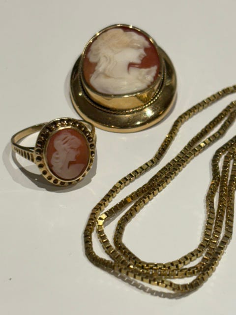Came anheng /brosje i gult gull