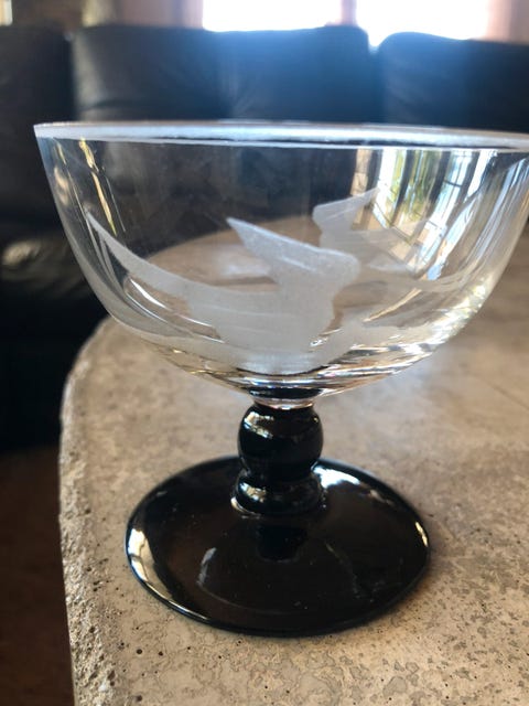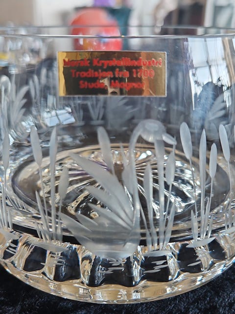Lott i blått glass.