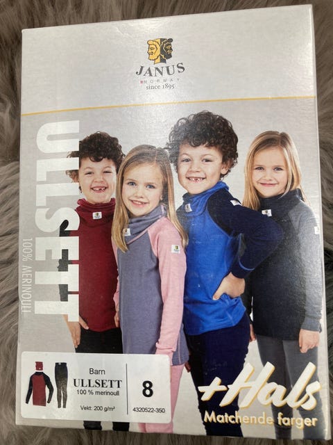 Ullsett Janus unisex, trøye, longs og buff, størrelse 8 år, 100 % merinoull