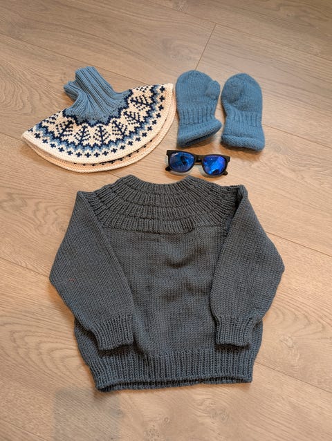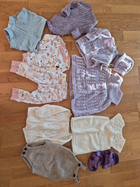 @U7 str 80-86 Ullpakke - God og varm Ull - noe har flekker og små ullhull