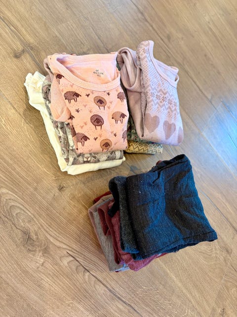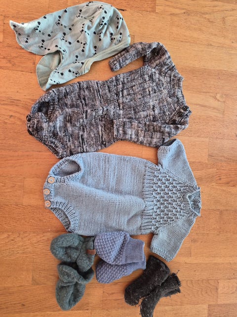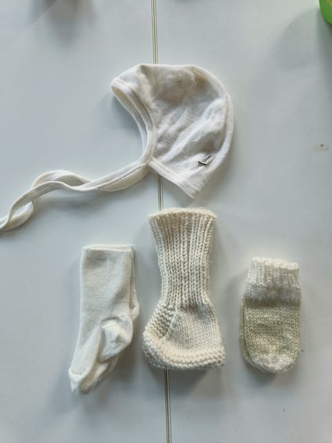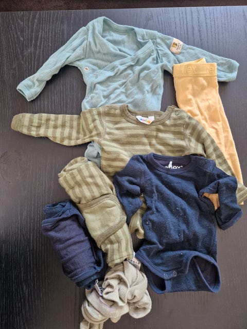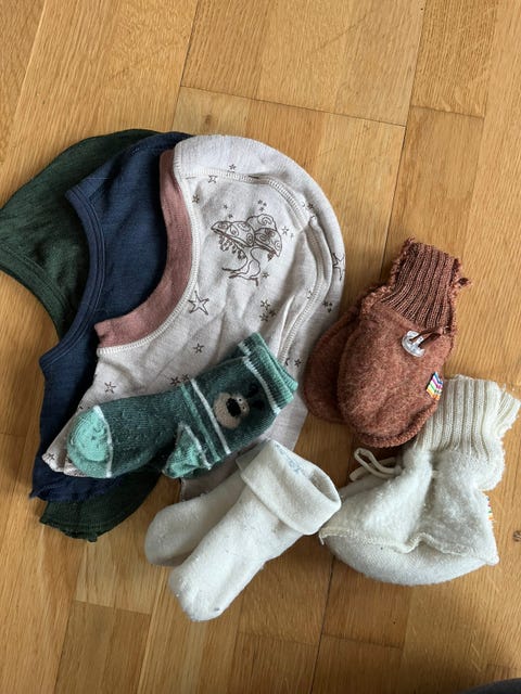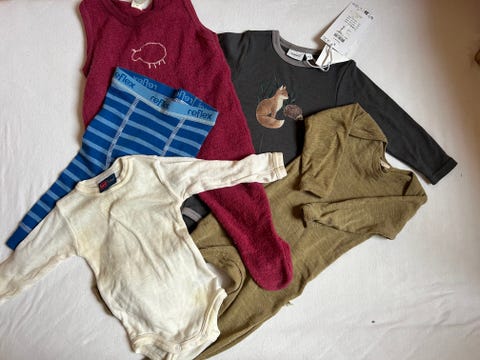 @U6 str 74-80 Ullpakke - God og varm Ull - noe har flekker og små ullhull