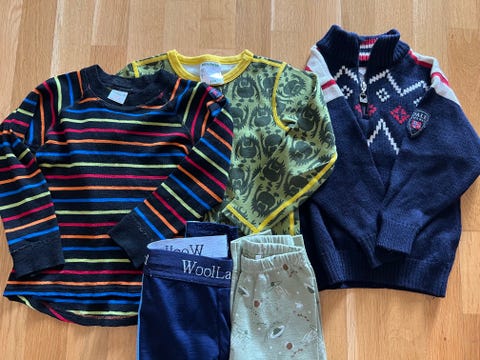 @U21 str 140 Ullpakke - God og varm Ull - noe har flekker og små ullhull