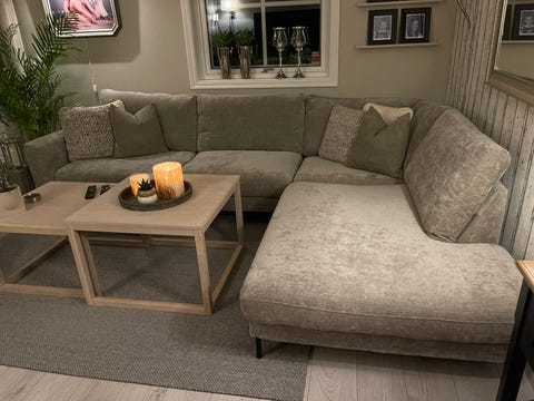 Grå hjørnesofa med elektrisk stol