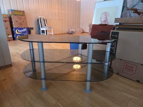 TV benk i glass og stål