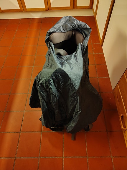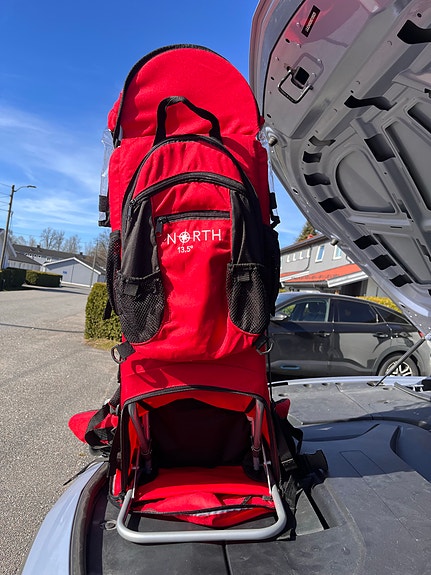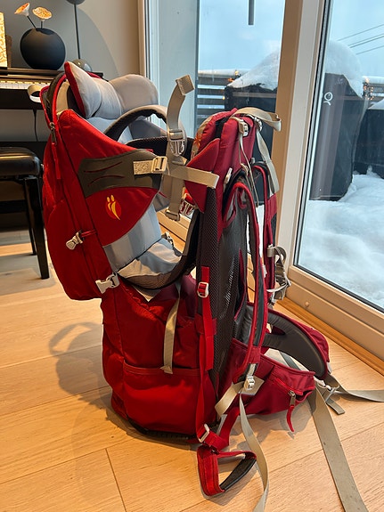 Bæremeis fra Vaude m/ regntrekk og solskjerming.