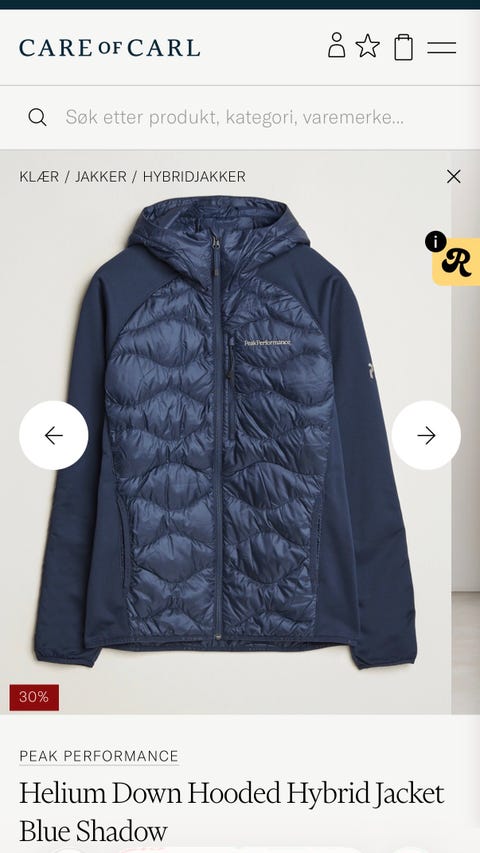 Peak Performance Helium Down Hooded Hybrid Jakke Blue Shadow selges billig!!