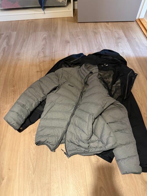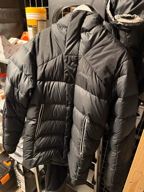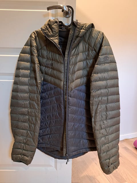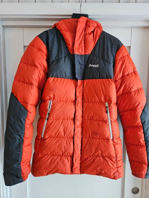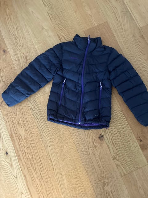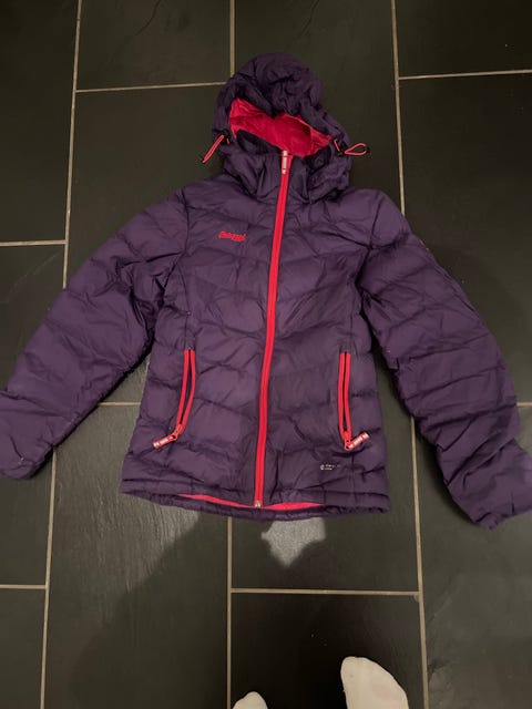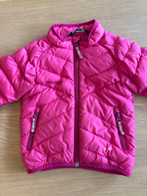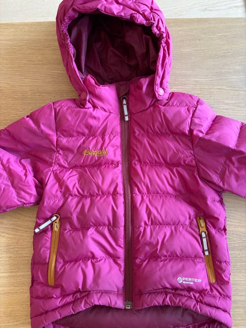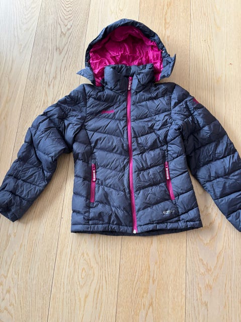 Rosa Bergans dunjakke str 122 / 7 år med hette, og snøstopper på ermene