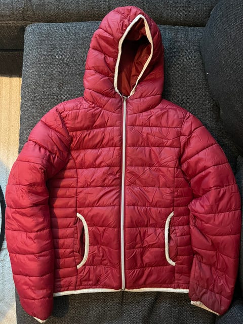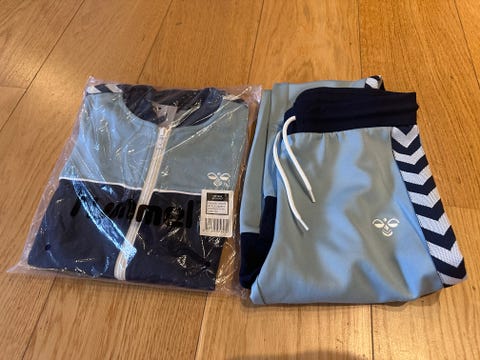 Fin overtrekksdress fra Skogstad. Rød jakke og sort bukse str 12/152 cm