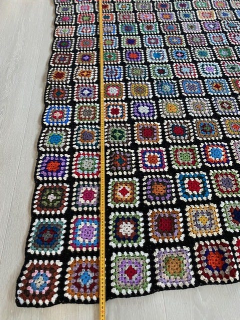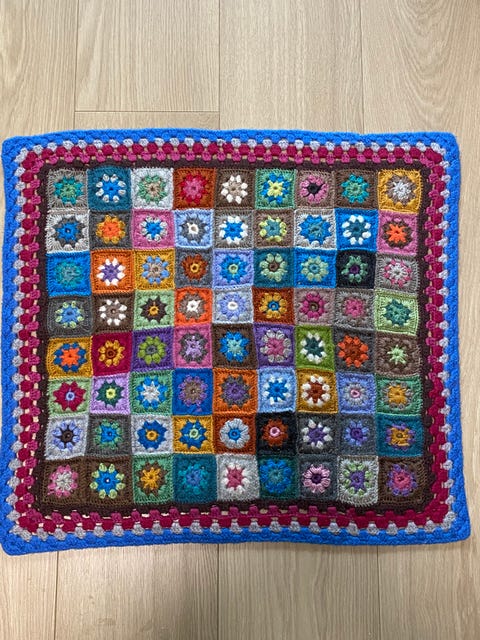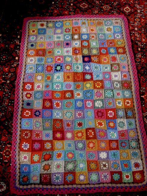 Heklet teppe i varme høstfarger