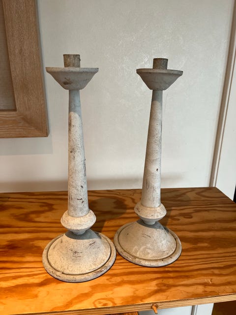 Vitage bordlampe av tre