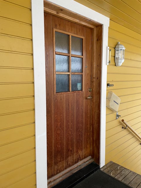 Ytterdør i tre med vindu