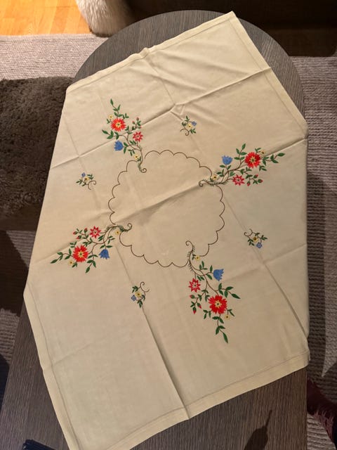 Vakker håndbrodert duk