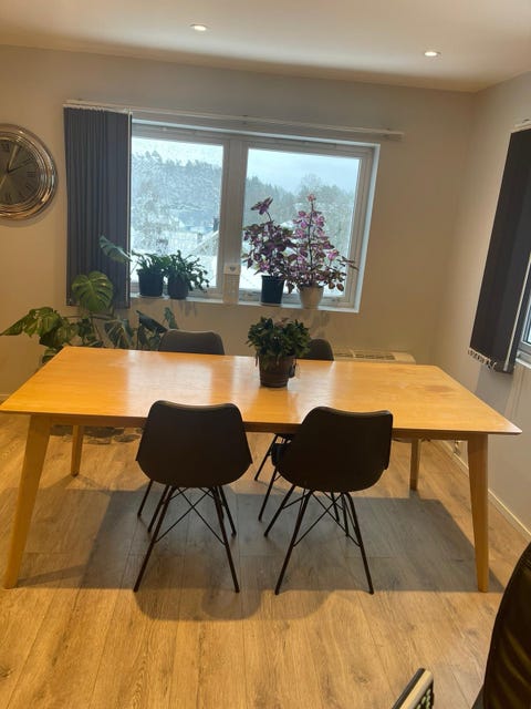 Spisebord med 4 stoler og benk