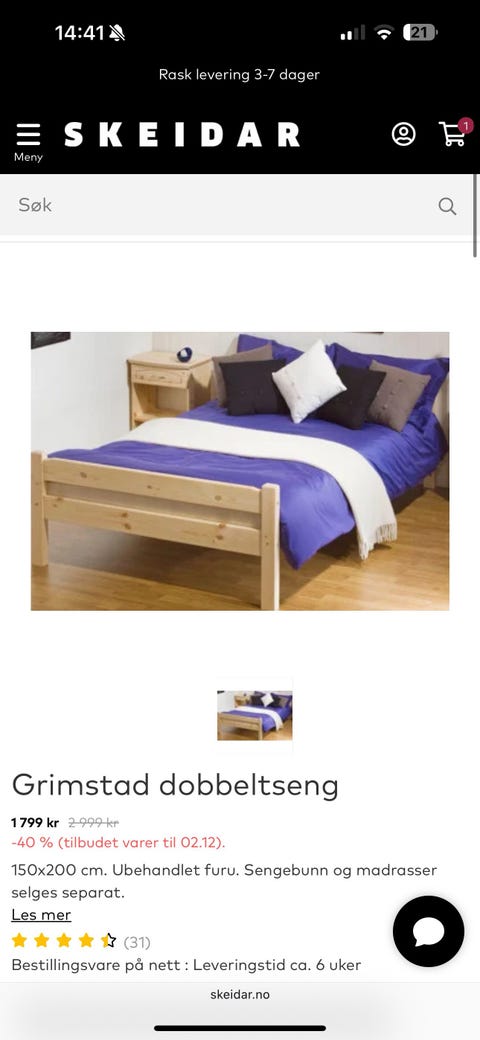Madrass fra møbelringen