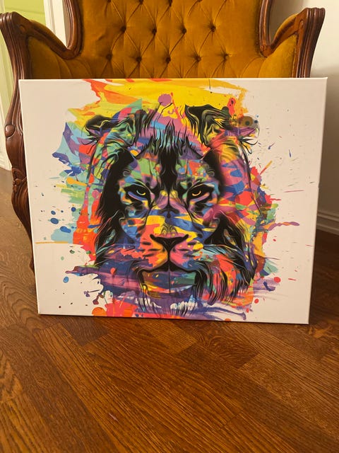 Maleri av okse i fargerik bakgrunn