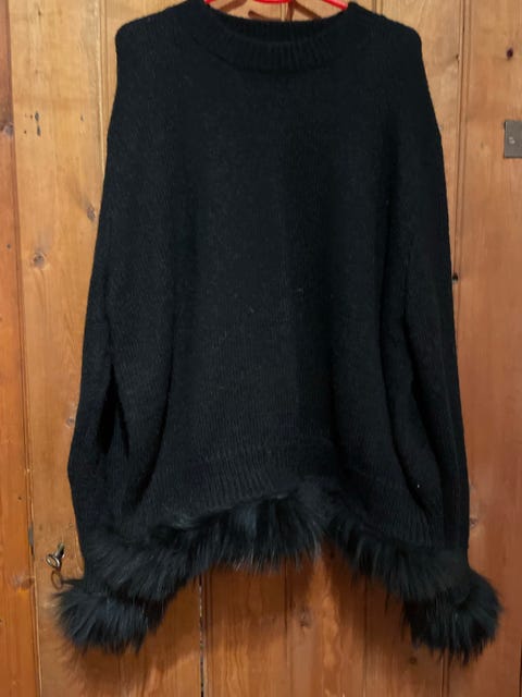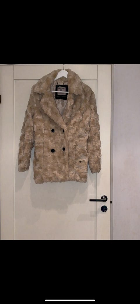 Flott strikket jakke med deilig pels inne i. Str..12-13 år selges kr.150.-