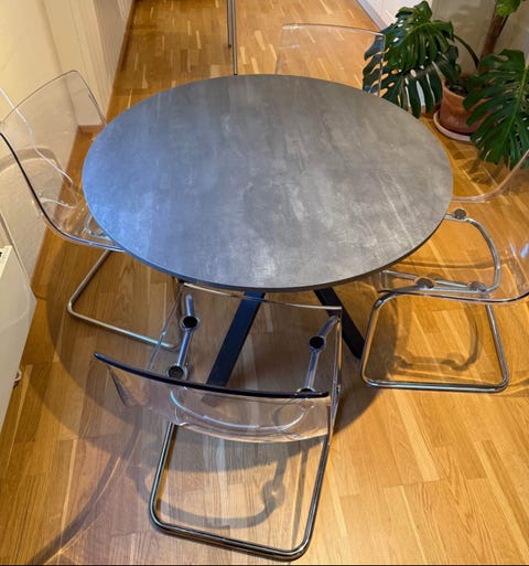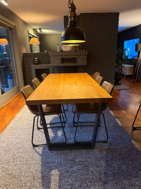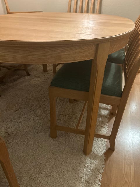 Spisebord og 8 stoler gis bort