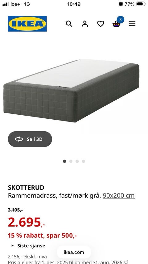 Seng og madrass