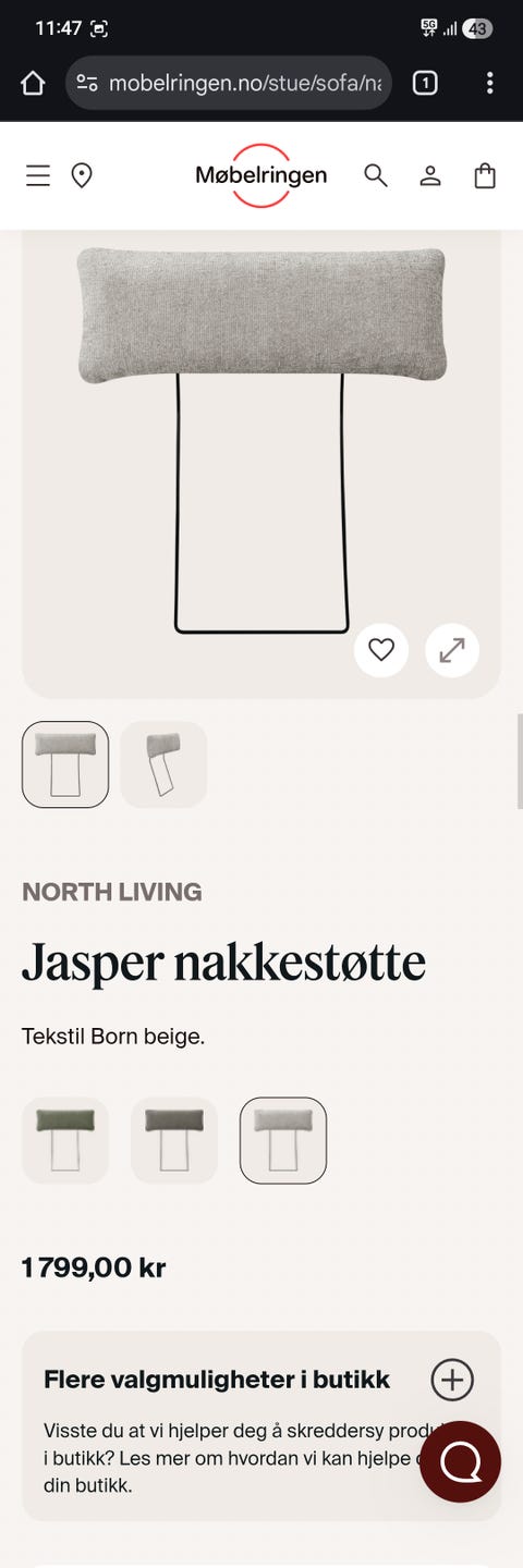 Nora hjørnesofa åpen ende med puff