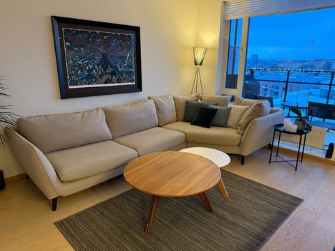 Hjørnesofa og bord