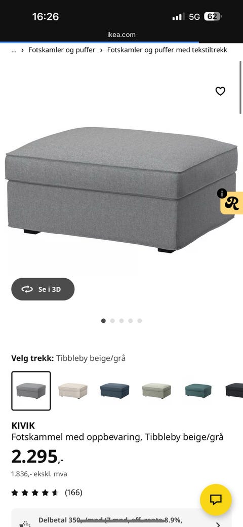 Slettvoll puff - pall - som ny