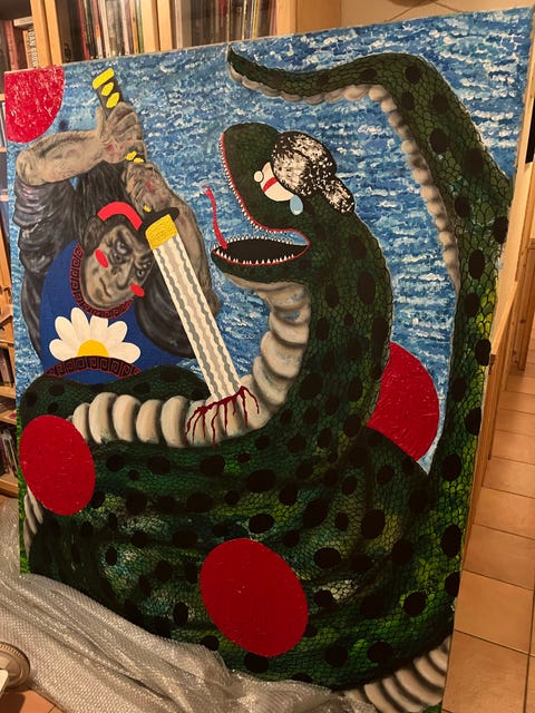 «Swinging dolphines» akrylmaleri