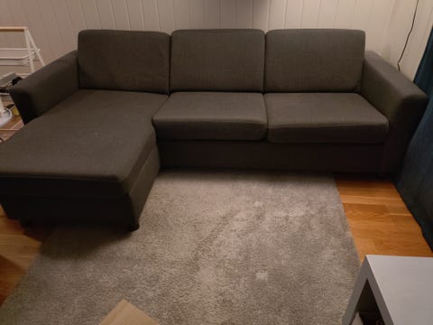 Grå hjørnesofa kan leveres