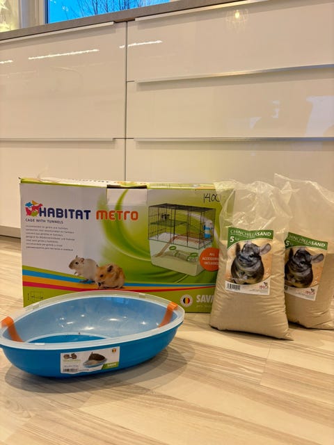 Stort hamsterbur med utstyr