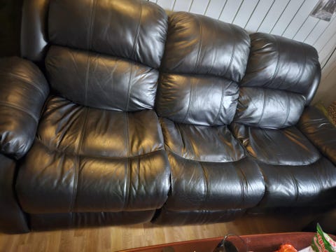 Sort skinnsofa 2 + 3 seter