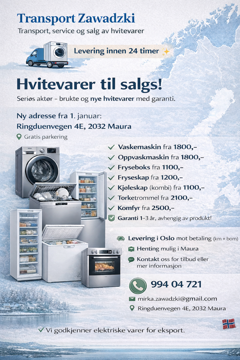 Transport, service og salg av hvitevarer