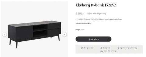 Ekeberg tv-benk 152x42 selges