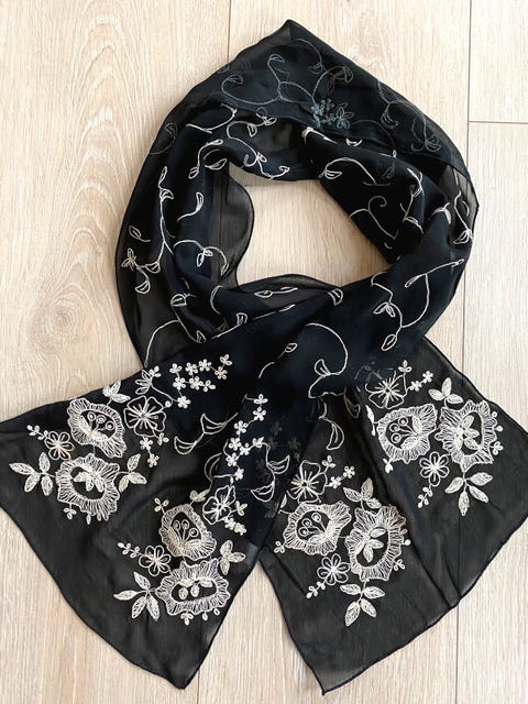 Skjerf med broderier.