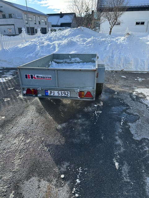 Liten grei henger med tipp