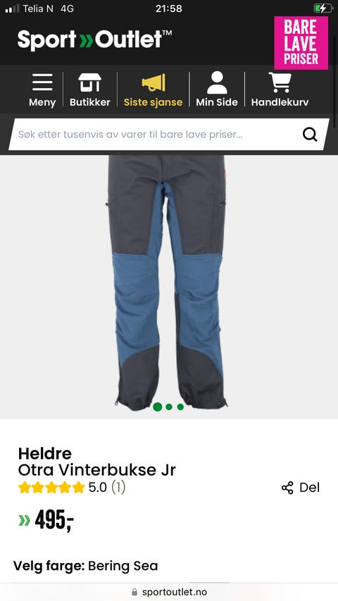 Polarn O. Pyret utebukse str 92 med bukseseler og glidelås på siden