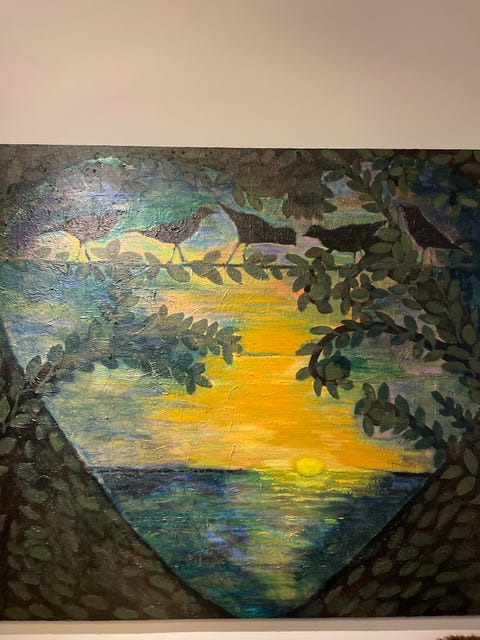 Maleri med naturmotiv og fugler