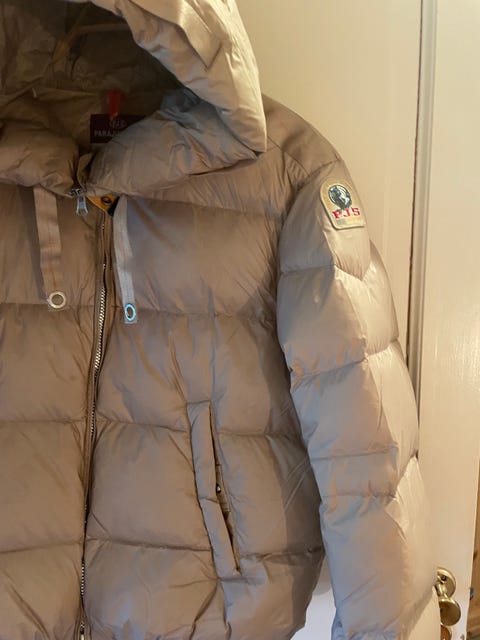 Superfin og varm PJS/Parajumpers dunjakke m/integrert hette og høy hals str M.