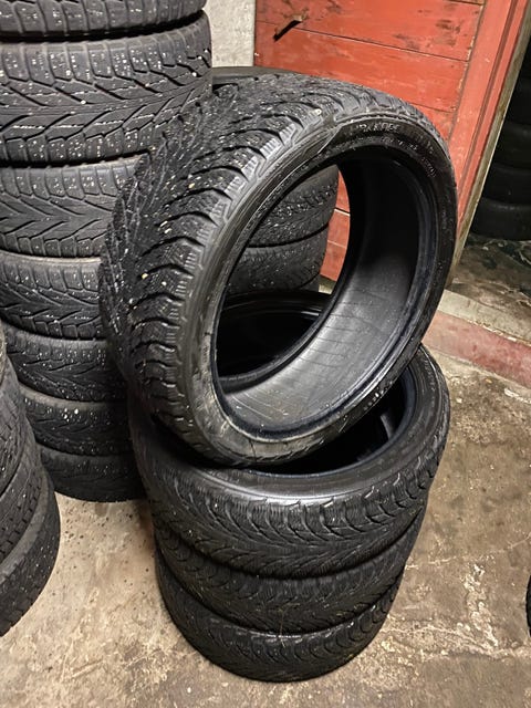 Løse piggfrie dekk selges