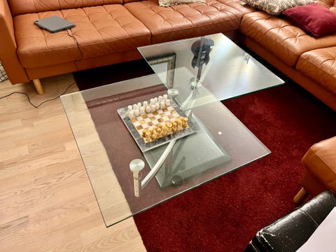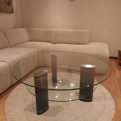 Glass sofabord med hylle