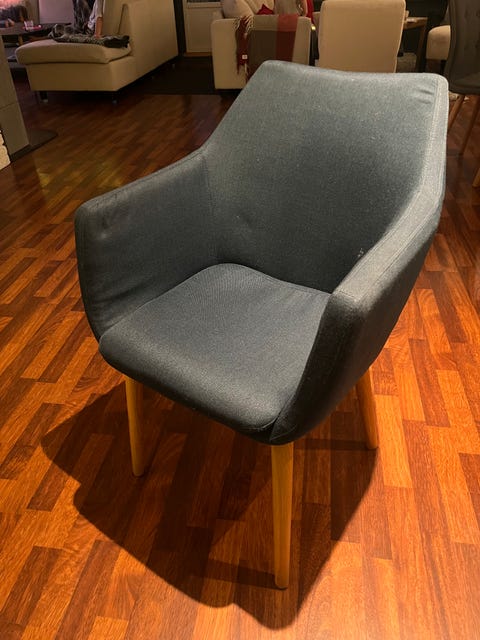 6 spisestoler i grått stoff.