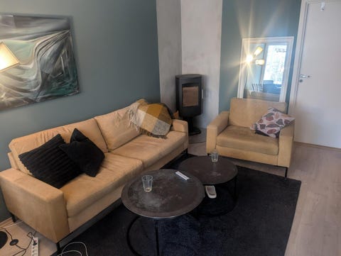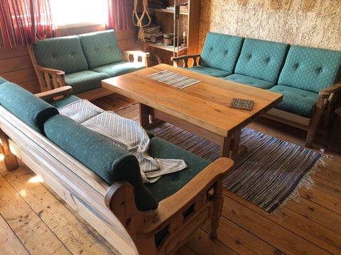 Sofa med bord og to stoler