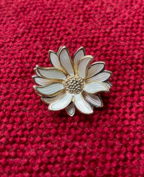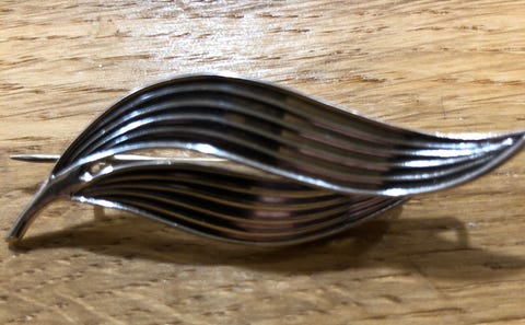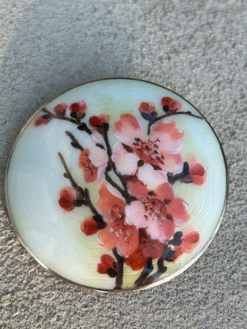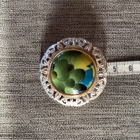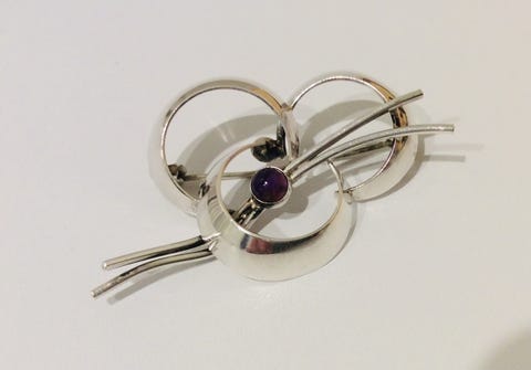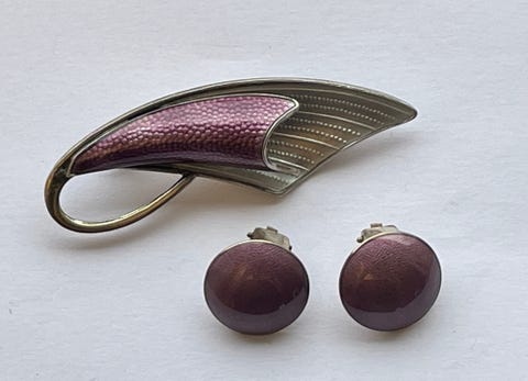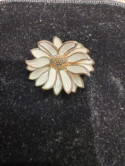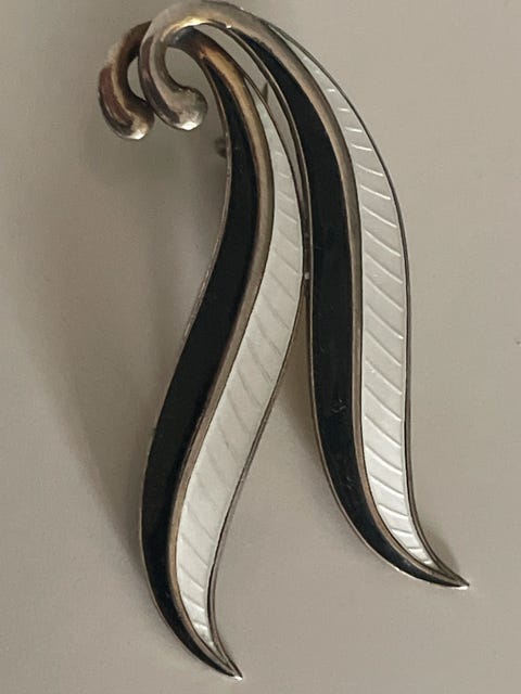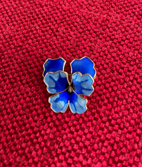 NY PRIS! BROSJE I SØLV/EMALJE - DAVID-ANDERSEN - FLORA-SERIEN «STEMORSBLOMST»