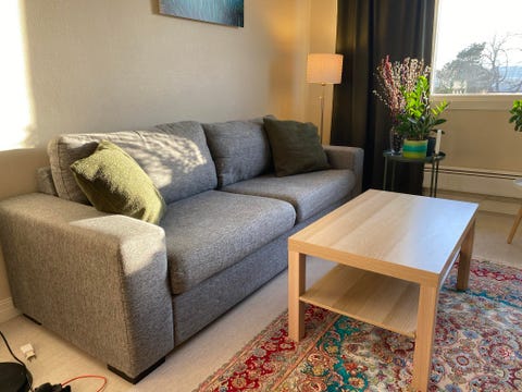 Gir bort brukt sofa med puff